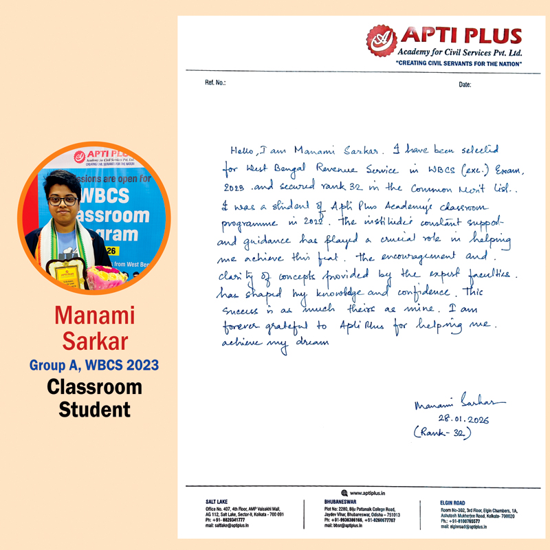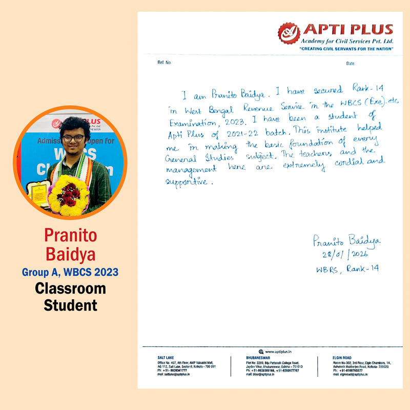 APTI PLUS Academy stands out as a premier institution for civil services preparation. Their holistic approach, combining expert guidance, comprehensive materials, and continuous support, has significantly enhanced my preparation journey. I wholeheartedly recommend APTI PLUS to any aspirant aiming for success in the UPSC or WBCS examinations.